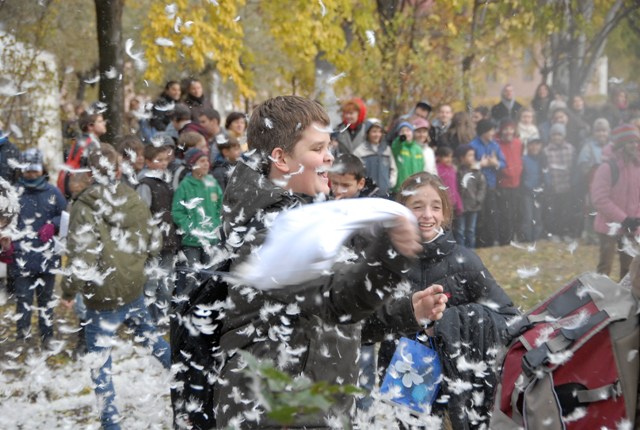 Valódi libatollak hópiheként szállingóztak a levegőben, amikor az Eötvös és a Karácsony általános iskolai diákjai párnacsatába kezdtek Jenei János testnevelő tanár vezetésével. A felnőttek közben libacsemegét, újbort, forralt bort, puncsot, kenyérlángost, lúdláb tortát és sült gesztenyét kóstolhattak.