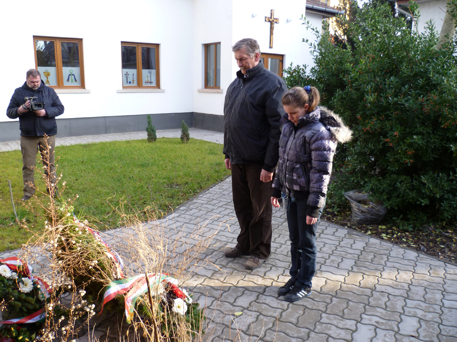 A Sárossy Tibor képzőművész által készített faszobornál a megemlékezés virágait elhelyezte még: Pákozdi József, a Jobbik képviselője, Hudson Judit, a Csepeli Kolping Egyesület elnöke, a Halker-KiralyTeam Kick-box Akadémia képviseletében Király István és Róth Dániel, valamint Dékány Ágoston festőművész.
