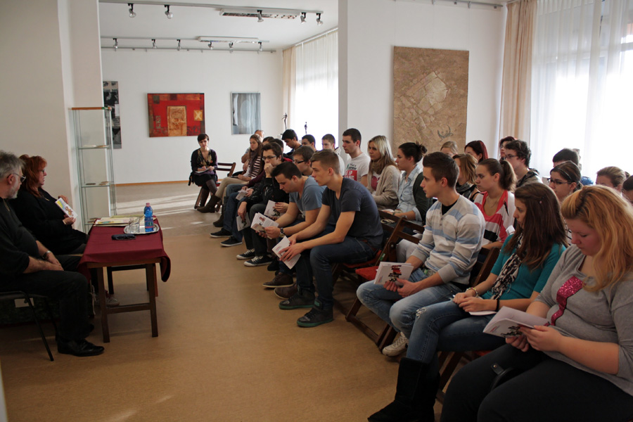 Végül a művészházaspár kérte a diákokat, ha idejük engedi, bátran látogassák a galériákat, és töltekezzenek a képzőművészek által megjelenített ezerarcú világ értékeiből.