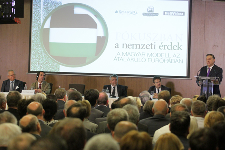 A miniszterelnök úgy fogalmazott, a mai kormányzati politika modellértékű elemének nevezhetjük, a munkaalapú társadalom bevezetését a jóléti helyett, az igazságos és méltányos tehermegosztás kialakítását, az érdem szerinti előrejutás elvét, valamint az Európa-politikát. Mi a nemzetek Európáját akarjuk, azt gondoljuk, hogy egy olyan föderációban, ahol feloldódnak a nemzetek, ott Magyarországnak nincsen helye – jelentette ki. Mint mondta, hazánk részt kíván venni az unió jövőjéről szóló vitában. Mi a nemzetek Európáját akarjuk látni, ezért dolgozunk – tette hozzá. Úgy fogalmazott, ha eltűnnek a nemzetek, eltűnik a tisztelet és a megbecsülés. Hangsúlyozta, a nemzetek eltűnésével egy birodalmi Európában kell élni, ahol a provinciáknak „gyakran kell szembenézniük igazságtalansággal, kettős mércével, és azzal, hogy visszaél a hatalmával az erős birodalmi központ”.