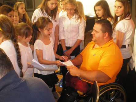 Mivel a Kék iskola meghatározó szerepet tölt be a kerület röplabdasportjában, egy újabb filmbejátszás segítségével (és Mihályi András értő szakkommentálásával) mindenki megismerkedhetett kicsit közelebbről is az ülőröplabda sportággal, amiben a mieink jó eséllyel pályáznak arra, hogy kijussanak a riói paralimpiára. A kitűnő hangulatú beszélgetés végén Fehér Gábor testnevelő kért szót, és méltatta a sportolókat, remekül szemléltetve tanítványainak, hogy micsoda erő, kitartás és elszántság lakozik a meghívott sportemberekben. A sportolókat és elért teljesítményüket példaként állította a gyerekek elé, melyből sokan, sokféleképpen profitálhatnak a jövőben. A programot az elmaradhatatlan dedikálások és közös fotók készítése zárta, aminek láthatóan minden vendég örömmel tett eleget.
