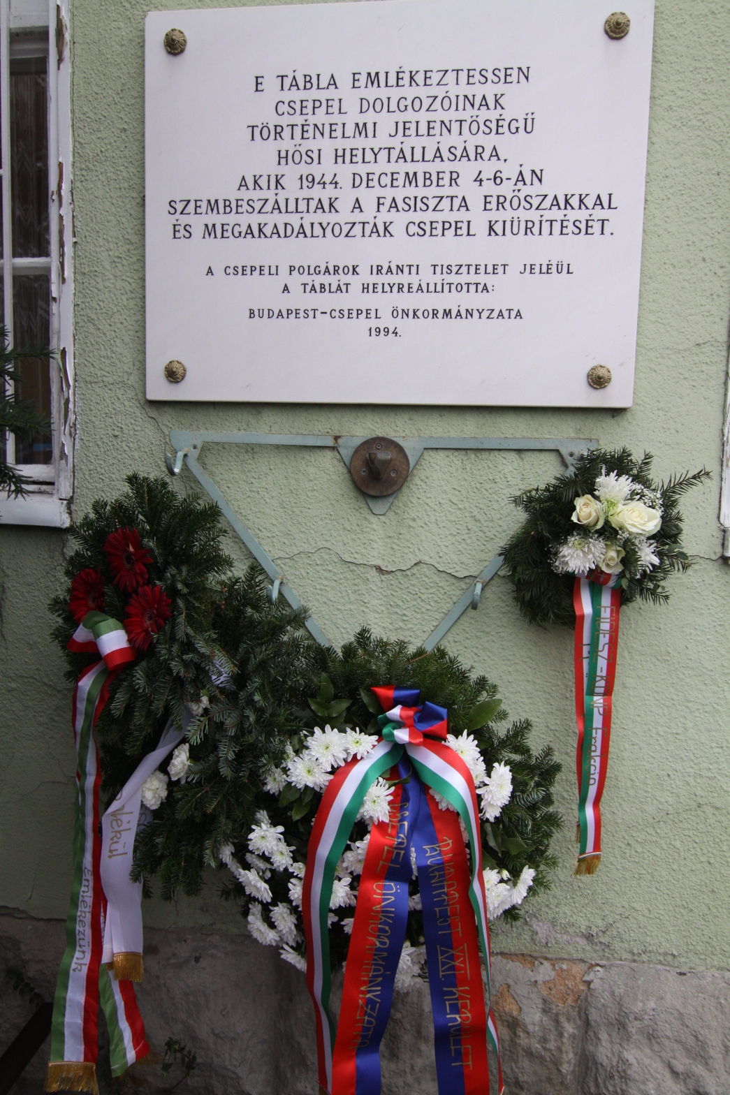 Csepel község lakóinak, a gyár munkásainak bátor kiállására emlékeztek, december 4-én szerda reggel az önkormányzat falán elhelyezett emléktáblánál. Napra pontosan 69 évvel ezelőtt a Szent Imre téren mintegy ötezren gyűltek össze, akik megakadályozták a község kiürítését. A kirendelt nyilasok, katonák és rendőrök képtelenek voltak feloszlatni, az őket és a németeket szidalmazó csepelieket, ezért a kiürítési parancsot visszavonták.