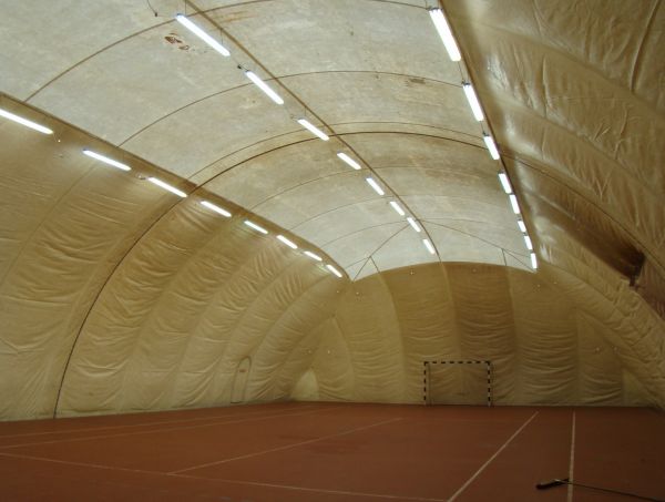 A munka reggel 7 órakor kezdődött, és délre már felfújva magasodott a focipálya fölé a ponyva.