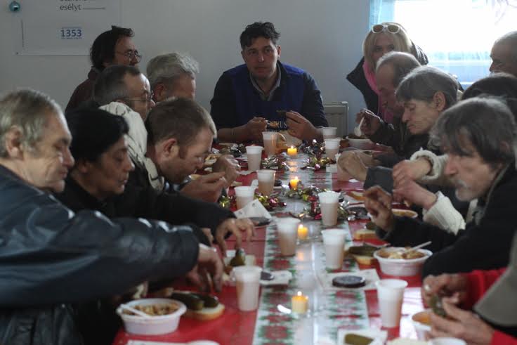 Az Ökumenikus Segélyszervezet által működtetett melegedőben a mai napon nyolcvan hajléktalan kapott ebédre sertéspörköltet galuskával, hozzá forró teát. A rászorulóknak szaloncukrot és meleg takarót is adtak ajándékba az önkéntes segítők.