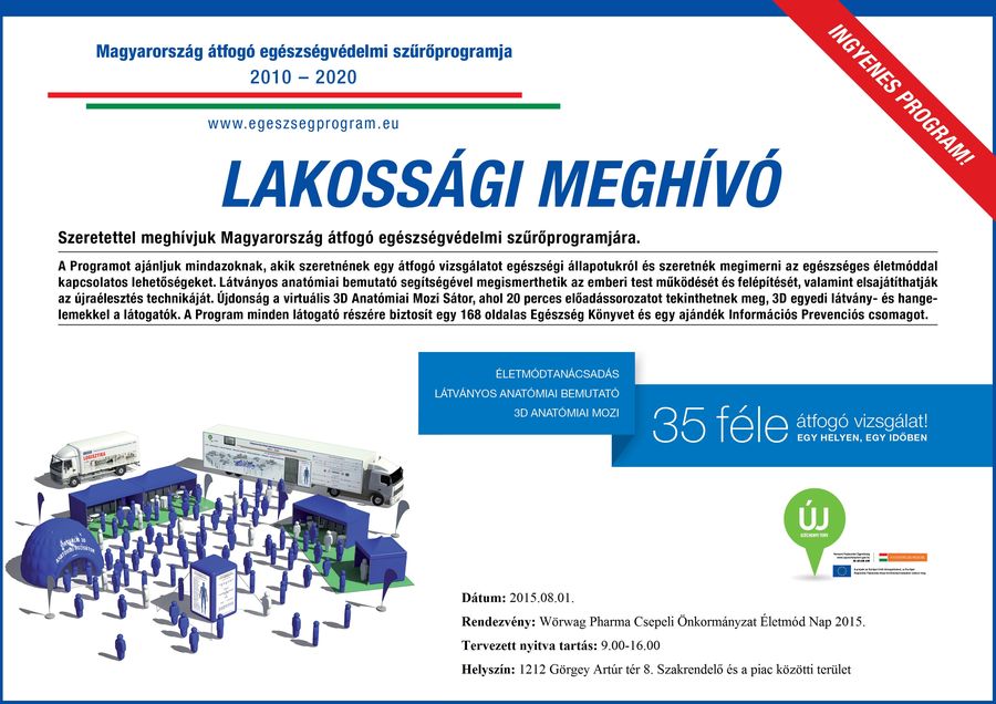 2015. augusztus 1-jén, szombaton Magyarország átfogó egészségvédelmi szűrőprogramja Csepelre érkezik.
