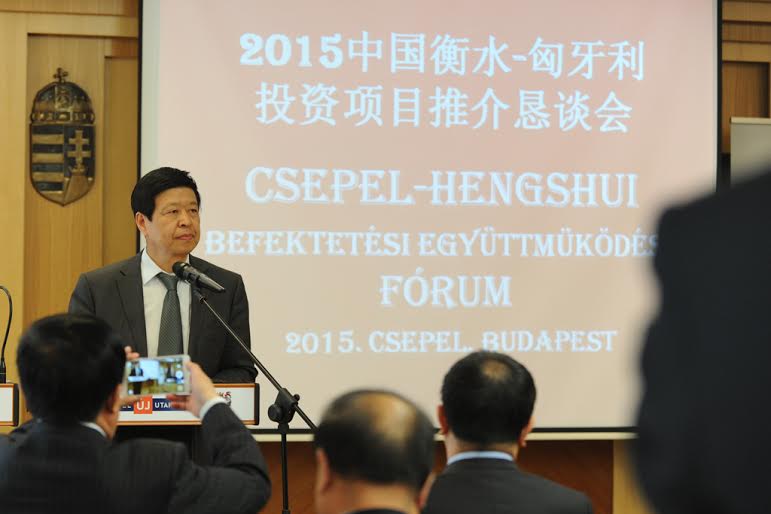 Ma úr, a kínai küldöttség vezetője elmondta, hogy Hensghui városa Pekingtől 200 kilométerre található, lakóinak száma 4,5 millió. Jó közúti és vasúti közlekedéssel rendelkezik, amely lehetővé teszi a város gyors fejlődését. Jelenleg Észak-Kína egyik legjelentősebb kereskedelmi, ipari központja. Kiváló természeti adottságokkal rendelkezik, amelynek gyöngyszeme egy tó és a körülötte lévő tájvédelmi terület. Rendszeresen rendeznek ott nemzetközi maratoni futóversenyeket, amelyekre csaknem harminc országból érkeznek résztvevők. „Kína nemrég közzétette, hogy Közép-Európában milyen együttműködéseket akar megvalósítani. Céljai között szerepel, hogy Magyarországgal hosszú távú kapcsolatokat építsen ki, amelyek kiterjednek a gazdasági, kereskedelmi, turisztikai területek fejlesztésére. Kína számára Magyarország kedvező célország, ahová érdemes befektetni. Hengshui városában jelentős az ipari termelés, ezen belül a vegyipar, a gépgyártás, a farmgazdaságok élelmiszeripara, a ruhagyártás és az információtechnológiai ipar.” – mondta Ma úr.