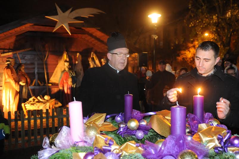 Ezután Borbély Lénárd polgármester meggyújtotta a koszorún az első gyertyát, majd Németh Szilárd országgyűlési képviselővel közösen egy gombnyomással elindították a karácsonyi díszkivilágítást. A mai naptól kigyúltak az ünnepi fények a Szent Imre téren és a Sétáló utcában.