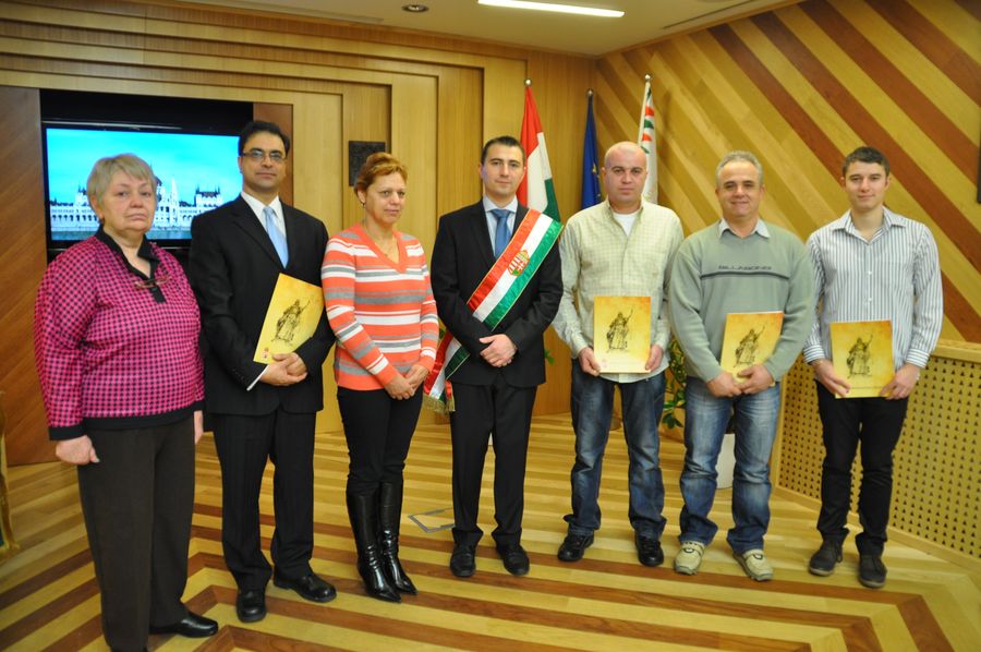 A gála végén a fellépő táncosok az önkormányzat ajándékát (könyv, CD, Csepel bora) kapták meg.