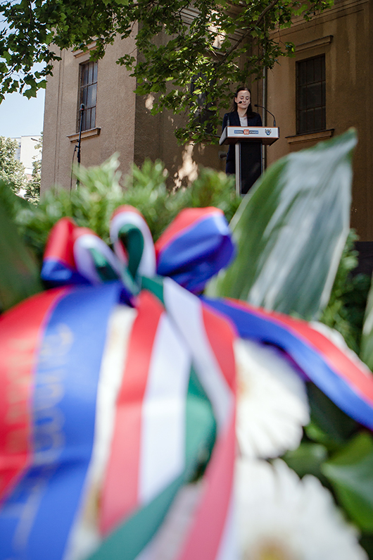 Az ünnepség elején a Csepeli Auth Henrik Fesztivál Fúvószenekar játszotta el a magyar himnuszt Péntek János karnagy vezetésével. Ezt követően Albert Mátyás, a székelyföldi Farkaslaka korábbi polgármestere, Csepel díszpolgára szólt az egybegyűltekhez. Megemlékezett arról, hogy királyaink évszázadokon át tették erős és jelentős országgá hazánkat, amely 1920-ban megszűnt nagynak lenni. „Akkor kimondatott, hogy ez az erős Magyarország nincs többé. Egy diktátumot kényszerítettek hazánkra. (…) A határokon túli magyarok körében jelentős esemény volt, hogy a Fidesz-KDNP kormányzat jóvoltából 2010-től megkaphatják a magyar állampolgárságot. A honosítás pillanata a nemzeti összetartozás békéjét jelenti. A haza az a föld, ahol világra jöttünk, ahol élünk, ahol boldogságunkat megtaláljuk” – mondta Albert Mátyás.