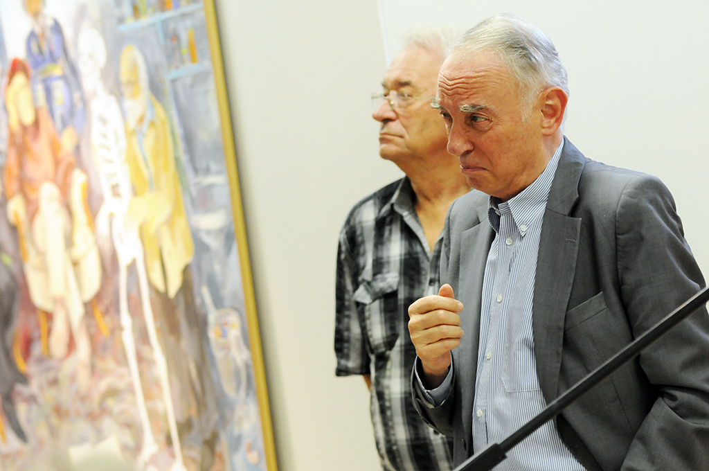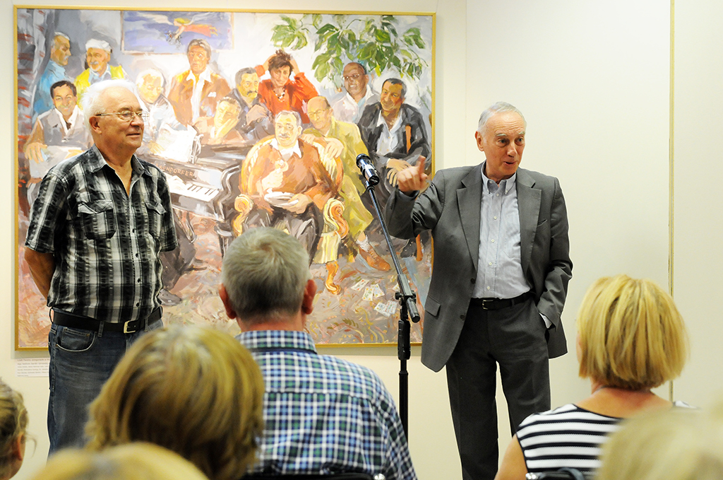 A művészettörténész megnyitójában Zámbó Kornélt kimondott portréfestőnek nevezte. A mostani kiállítás művei is régi művészeket idéznek fel, mint például Munkácsy, Leonardo da Vinci, Liszt Ferenc, Újfalussy József, Eötvös Gábor.
