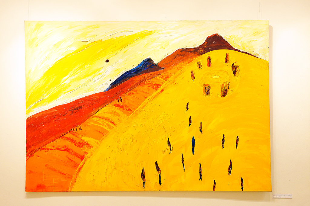 „Intenzíven és sokszor használom a sárga színt, de nincs különösebb jelentősége. Ösztönösen festek, semmire sincs racionális magyarázat. Ágh István költő szavait idézve, belső tájak ezek a képeim” – mondta el Minerva.