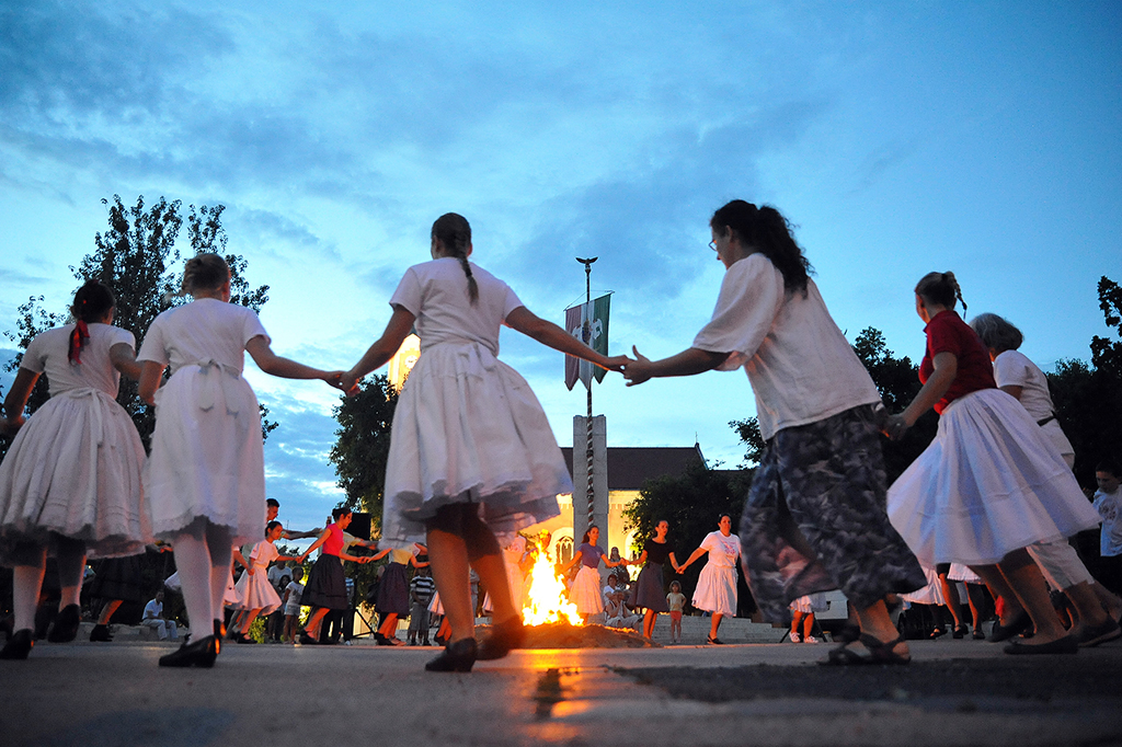 A köszöntés után a néptáncosok a Botosánka Együttes kíséretével moldvai csángó dallamokra ropták a táncot, majd párosával rugaszkodtak neki a tűz átugrásának. A táncba természetesen a nézők is bekapcsolódhattak, szülők, nagyszülők és gyerekek bővítették a kört.