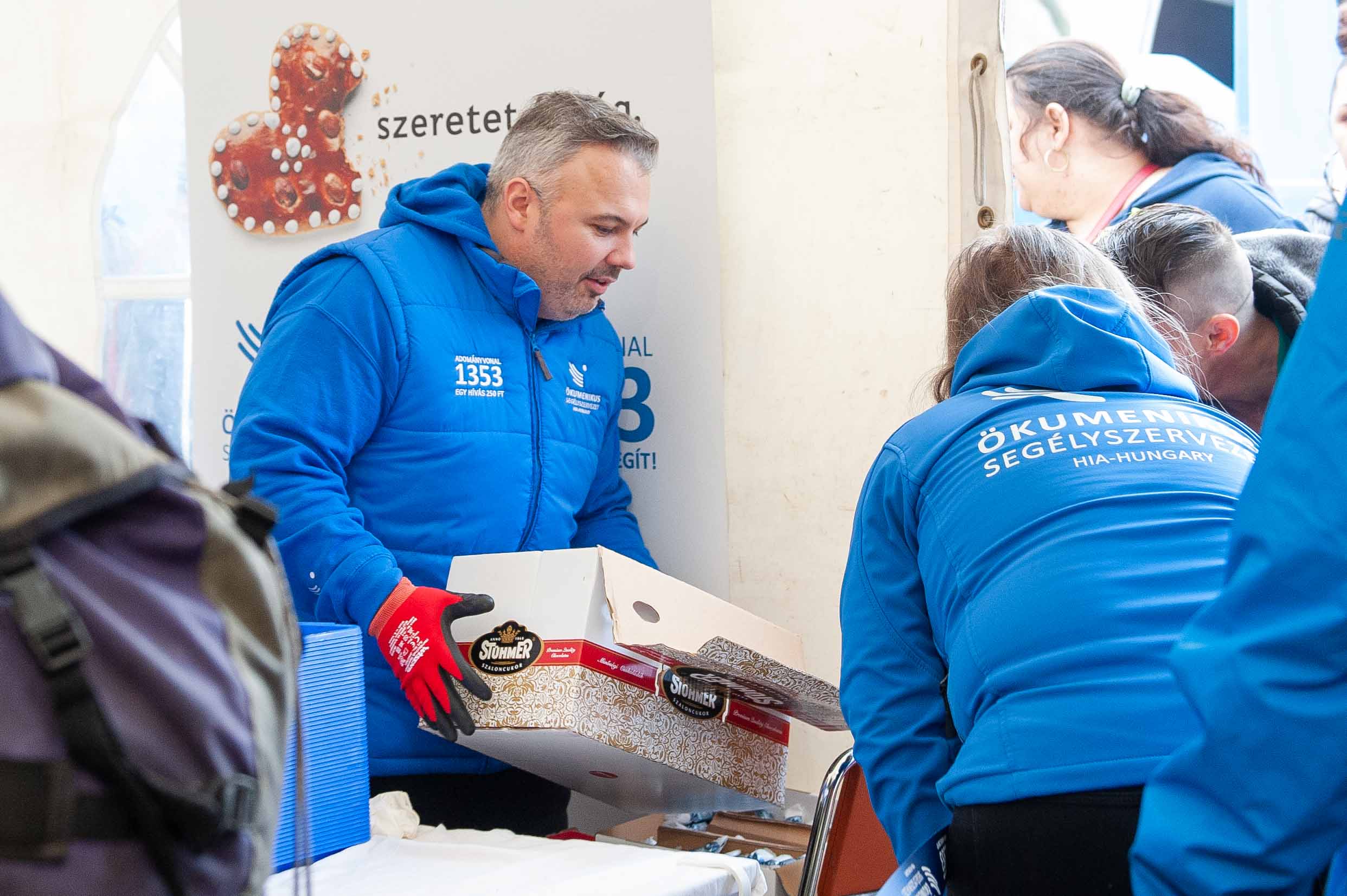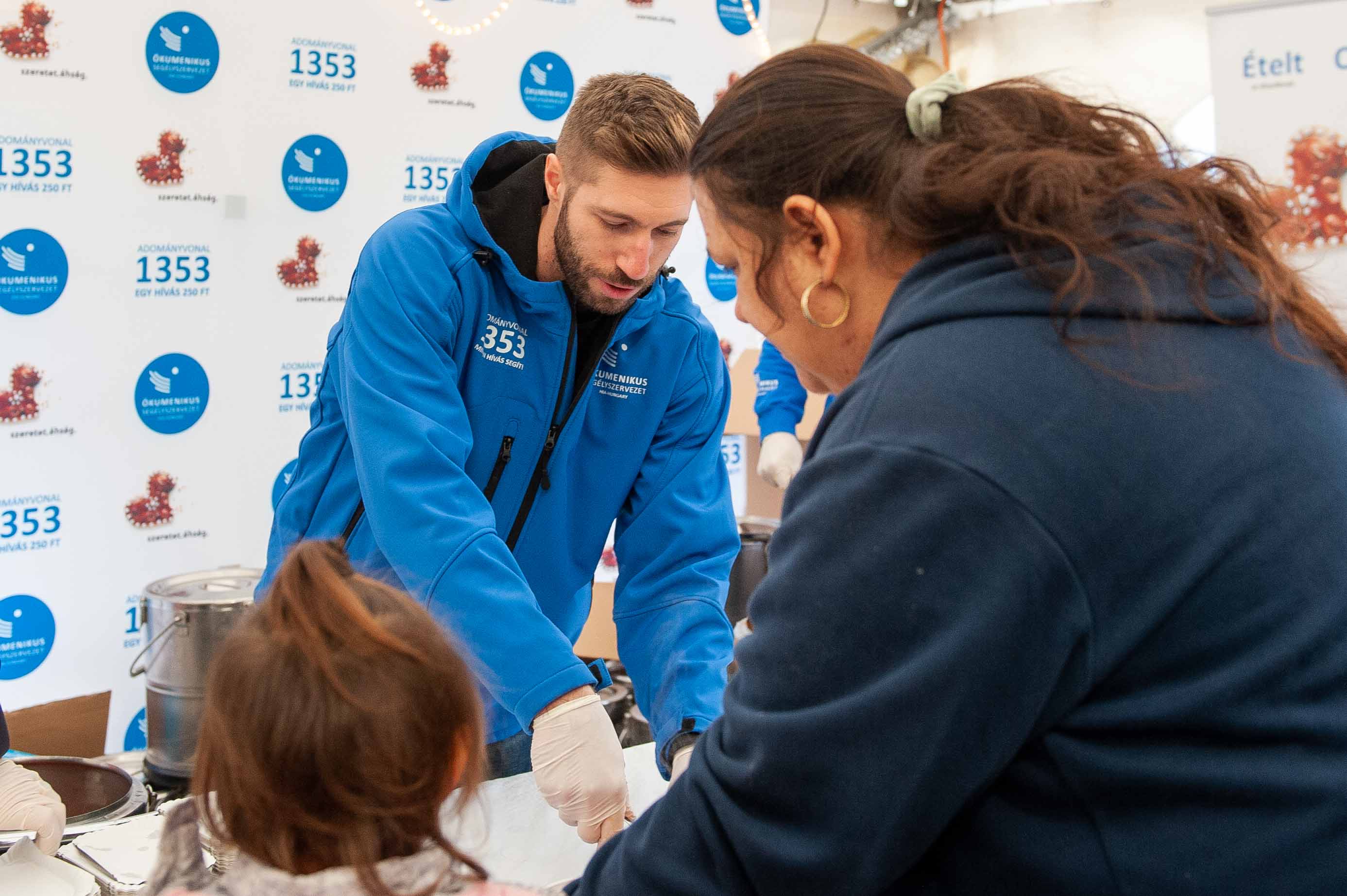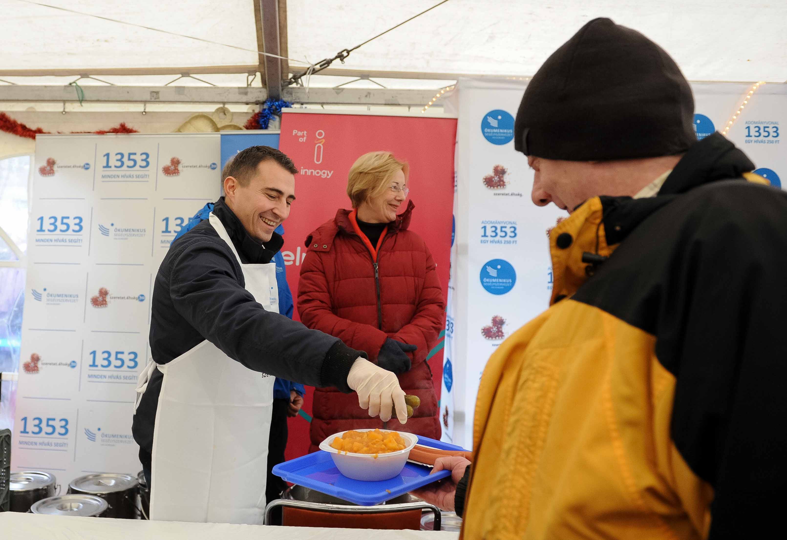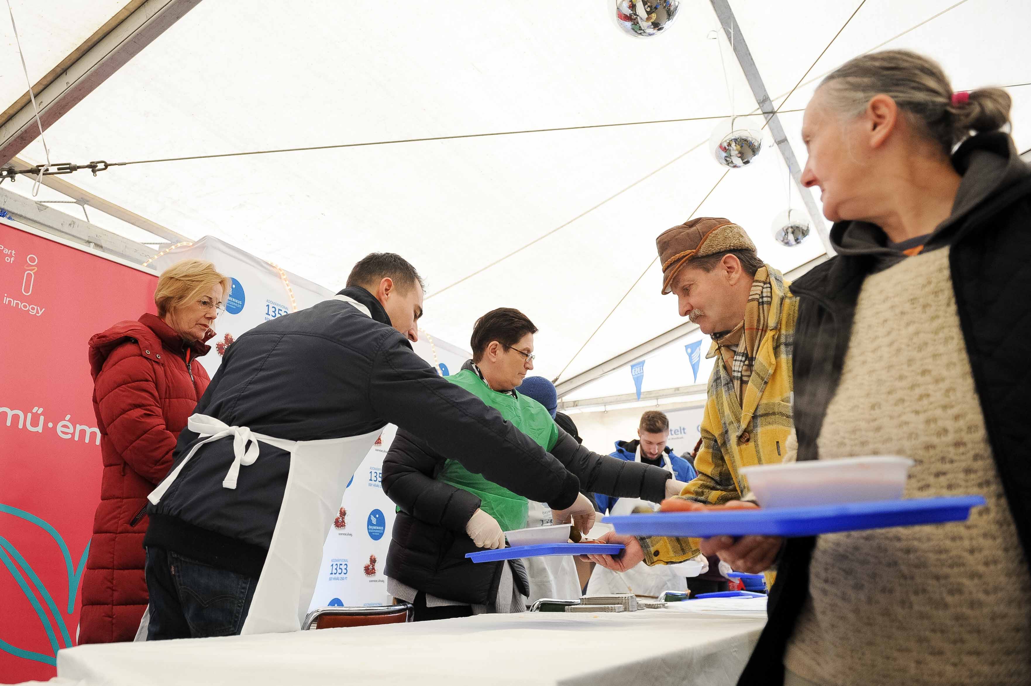 Gáncs Kristóf, a Magyar Ökumenikus Segélyszervezet kommunikációs igazgatója érdeklődésünkre elmondta, hogy naponta ezer adag ételt osztanak ki a rászorulóknak a hagyományos adventi-karácsonyi szeretetvendégség keretében. Az ételosztásban a karitatív szervezet munkatársai, támogatói és önkéntesei vesznek részt. Csütörtökön paprikás krumplit, kakaós csigát, valamint teát, gyümölcsöt, szaloncukrot szolgáltak fel. A szeretetvendégség nemcsak az ebédekről szól, hanem arról is, hogy az emberek együtt örüljenek az ünnepeken. A segélyszervezet egész évben támogatja a rászorulókat országszerte. A csepeli ételosztás után Gyulán és Debrecenben folytatja jótékonysági tevékenységét. Magánemberek a 1353-as telefonszámon támogathatják a Magyar Ökumenikus Segélyszervezetet; egy hívás árával, 250 forinttal járulhatnak hozzá a költségekhez. Csepelen a Szent István út 170. szám alatt működik a Magyar Ökumenikus Segélyszervezet csepeli központja, ahol folyamatosan szerveznek közösségi programokat családok, gyerekek részére, és ahová bármely rászoruló fordulhat, ha szükségét érzi.