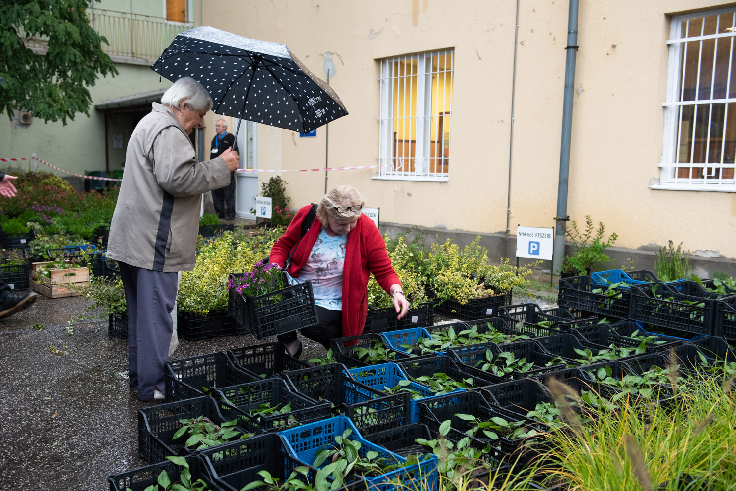 Molecz Jánosné és férje a Szatmári utcából érkeztek a dísznövényosztásra. „Ha ilyen esős időben itt vagyunk, mindenki gondolhatja, mennyire szeretjük a kertészkedést. Bugás hortenziát és törpeorgonát viszünk haza. Tavasszal és ősszel is mindig eljövünk, jók az ilyen akciók. A szomszédunk gyümölcsfához is hozzájutott, legközelebb mi is jobban figyelünk a facsemete akcióra. A most választott törpeorgonát kiültetjük a házunk elé, mert ott épp elhalt a sövényünk fele. A hortenzia pedig a kertünket díszíti majd.” – tette hozzá.