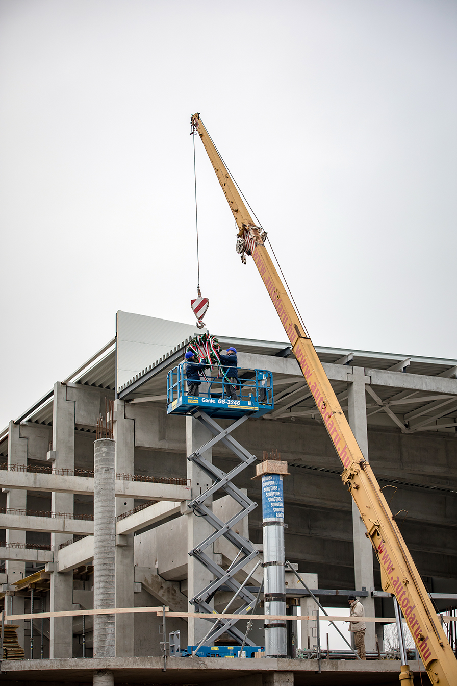 Bokrétaünnepet tartottak a Kozma István Magyar Birkózó Akadémia épülő csepeli sportcsarnokánál, amely kilenc hónappal az alapkő letétele után elérte az épületszerkezet legmagasabb pontját.