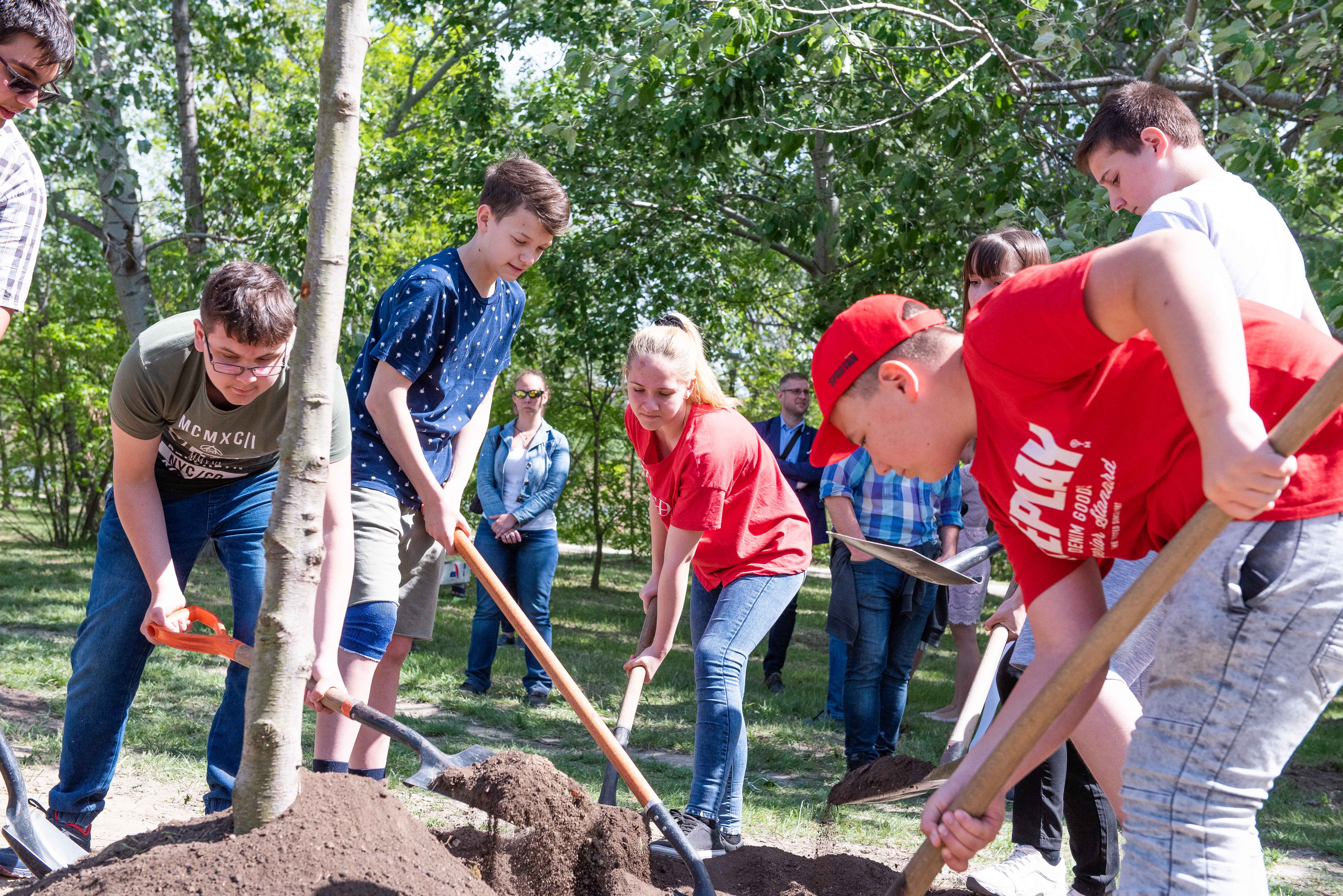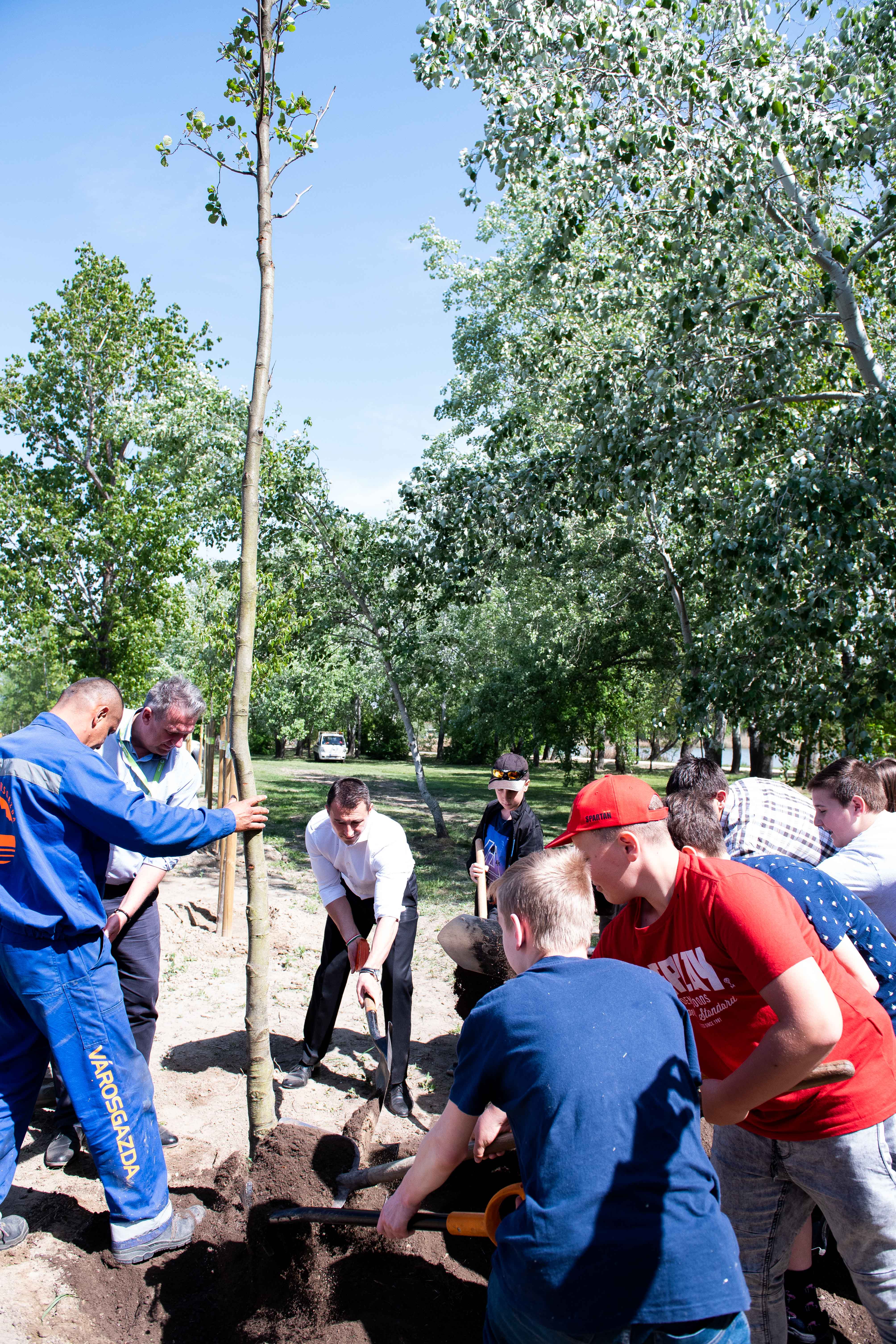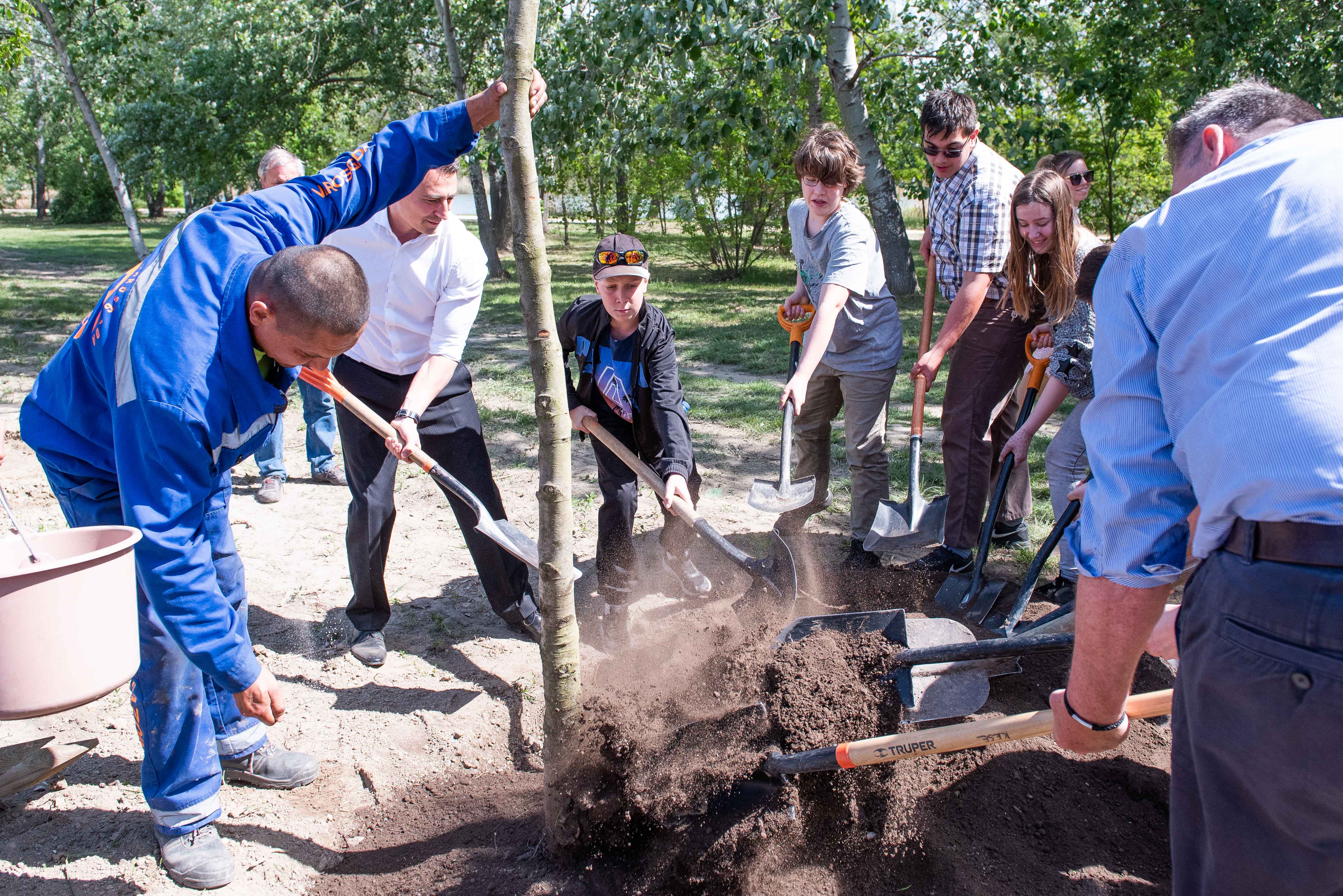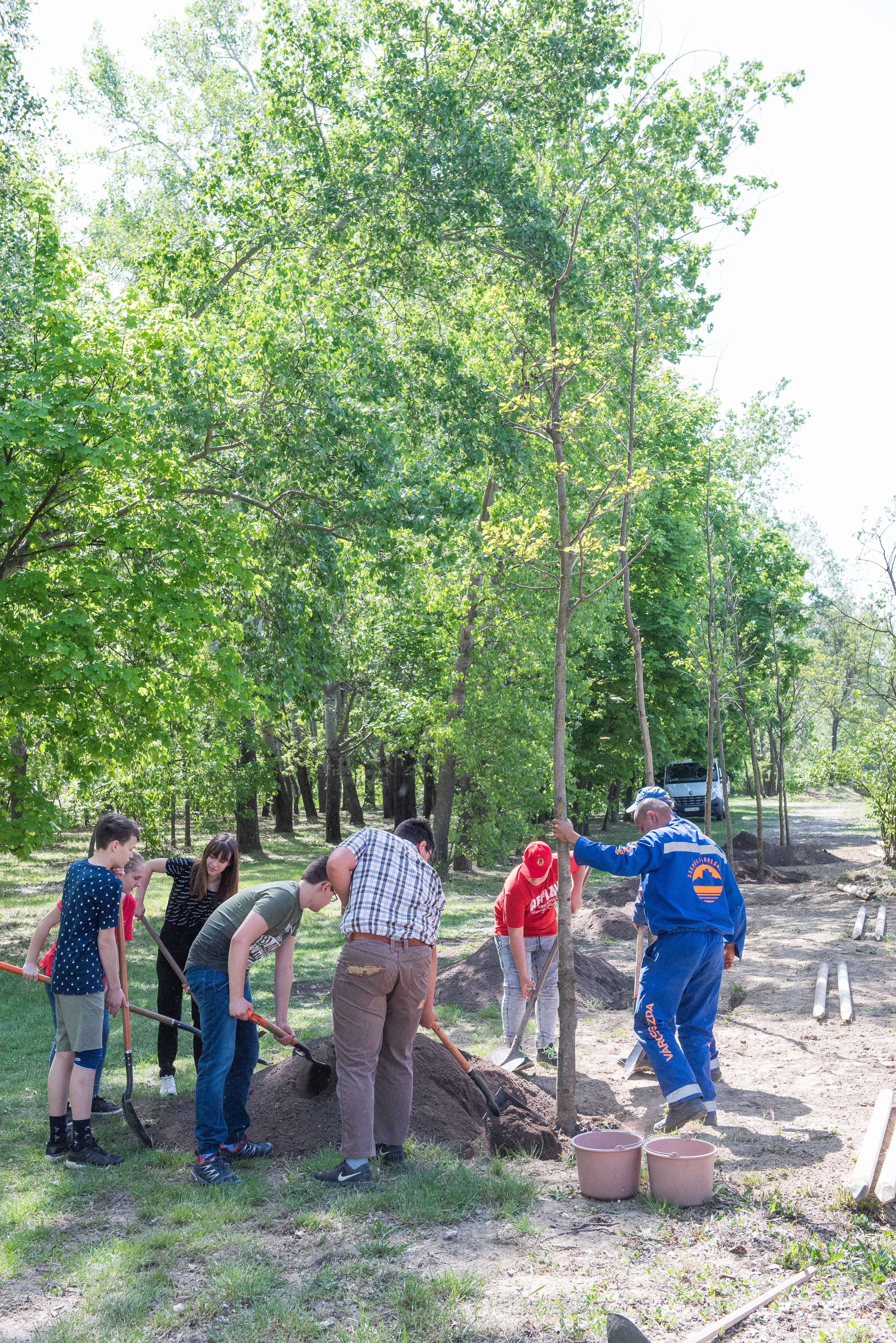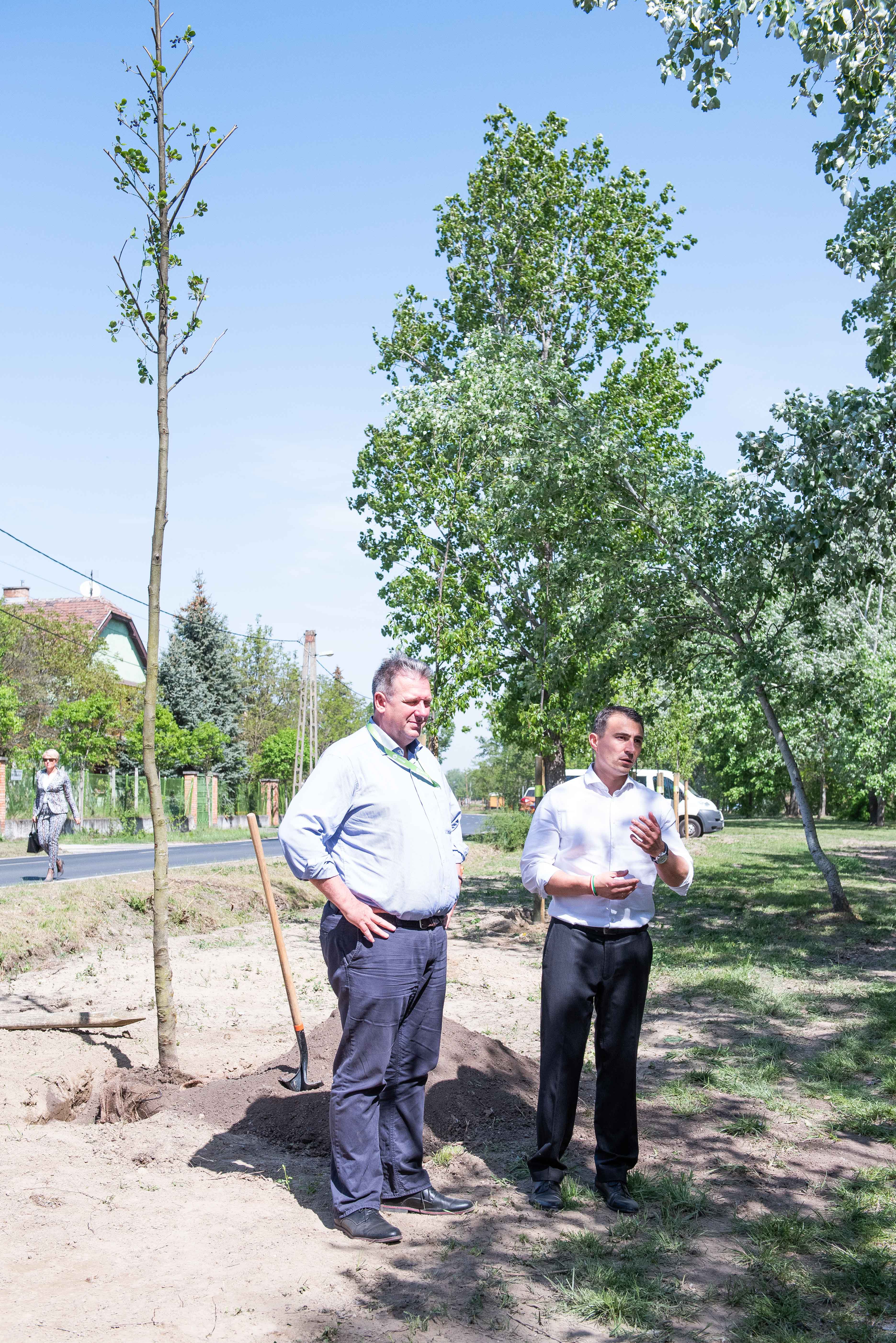 A facsemetéket Borbély Lénárd polgármester és Balogh Róbert a Főtáv munkatára a Szárcsa Általános Iskola 7-8. osztályos diákjaival közösen ültette el.