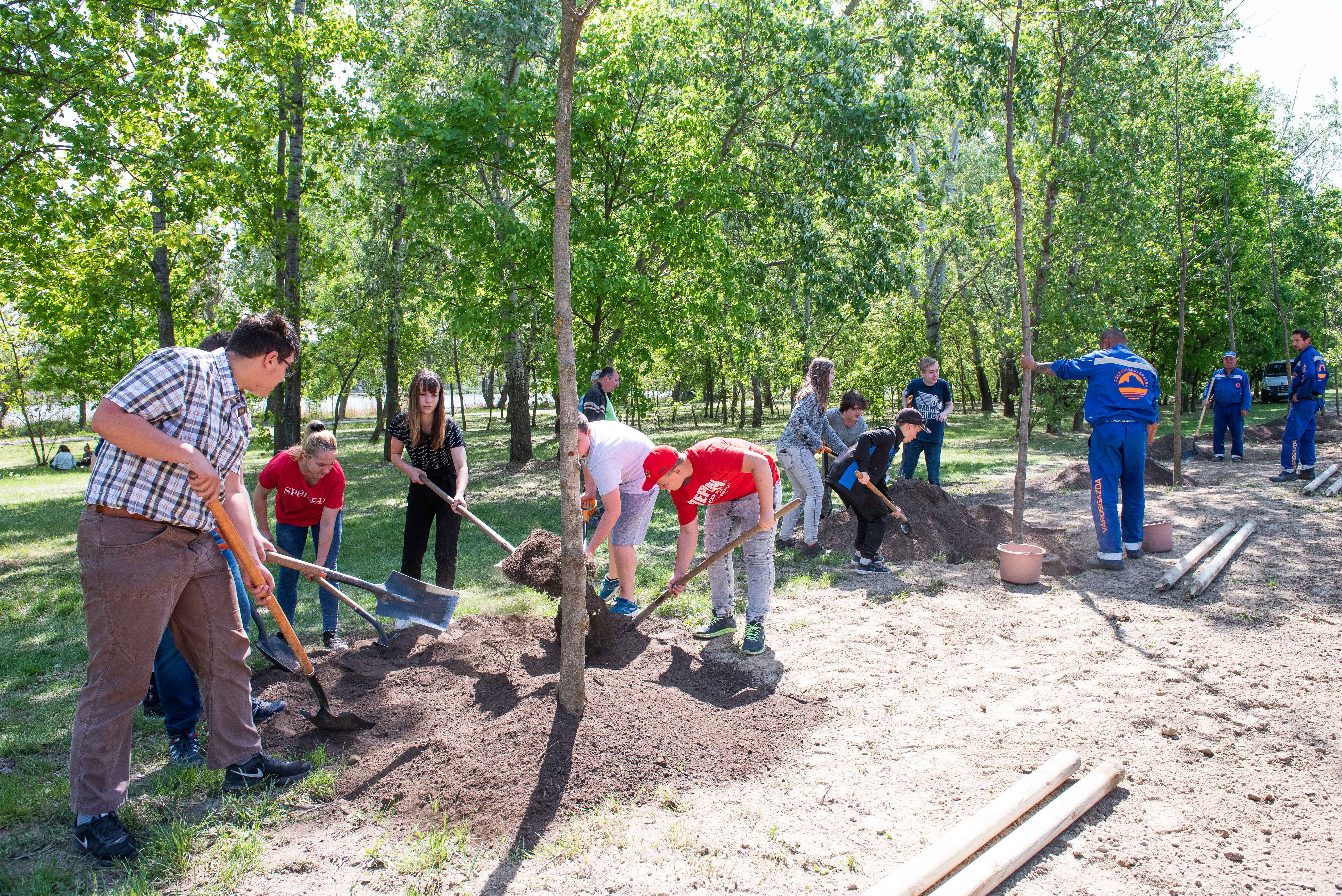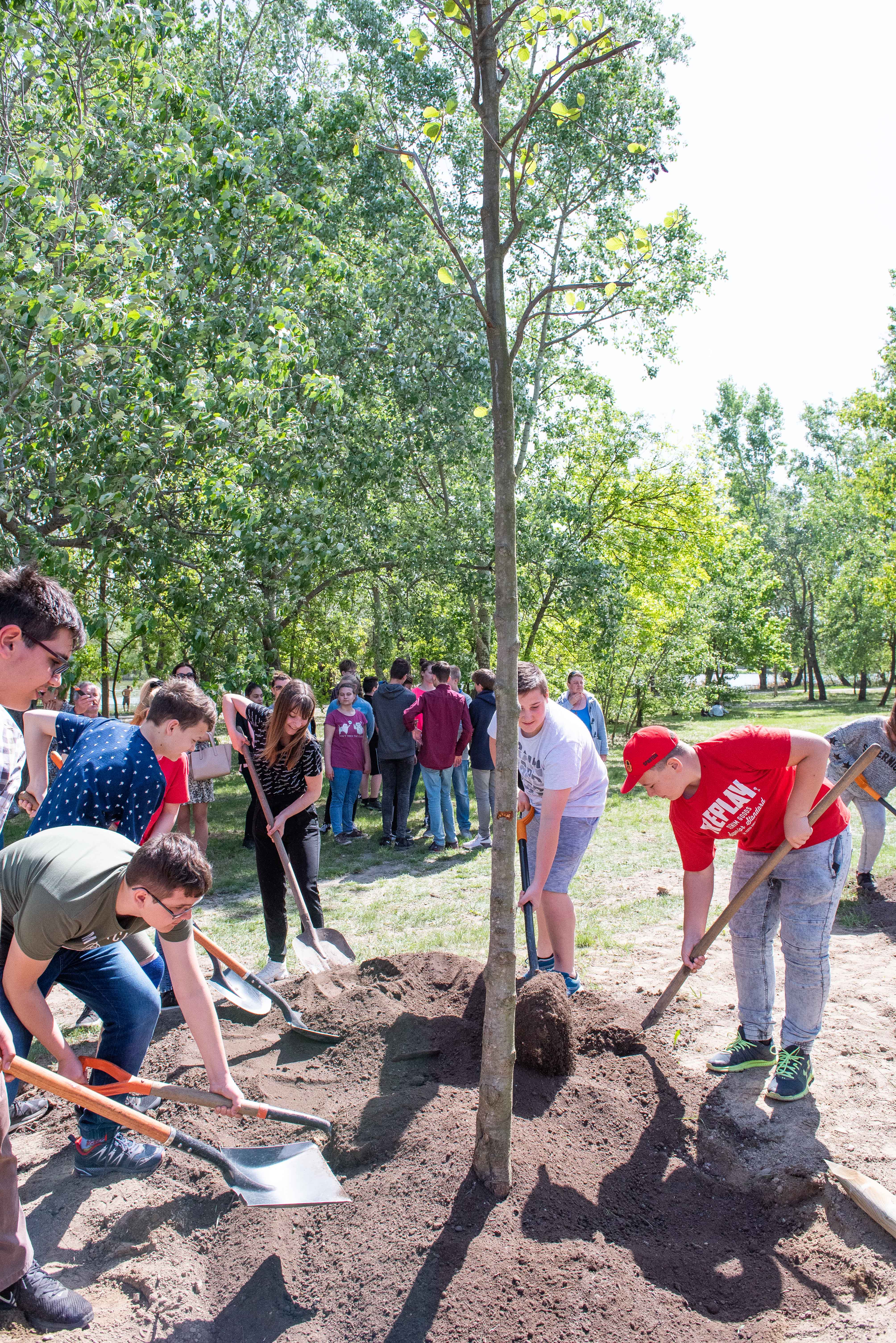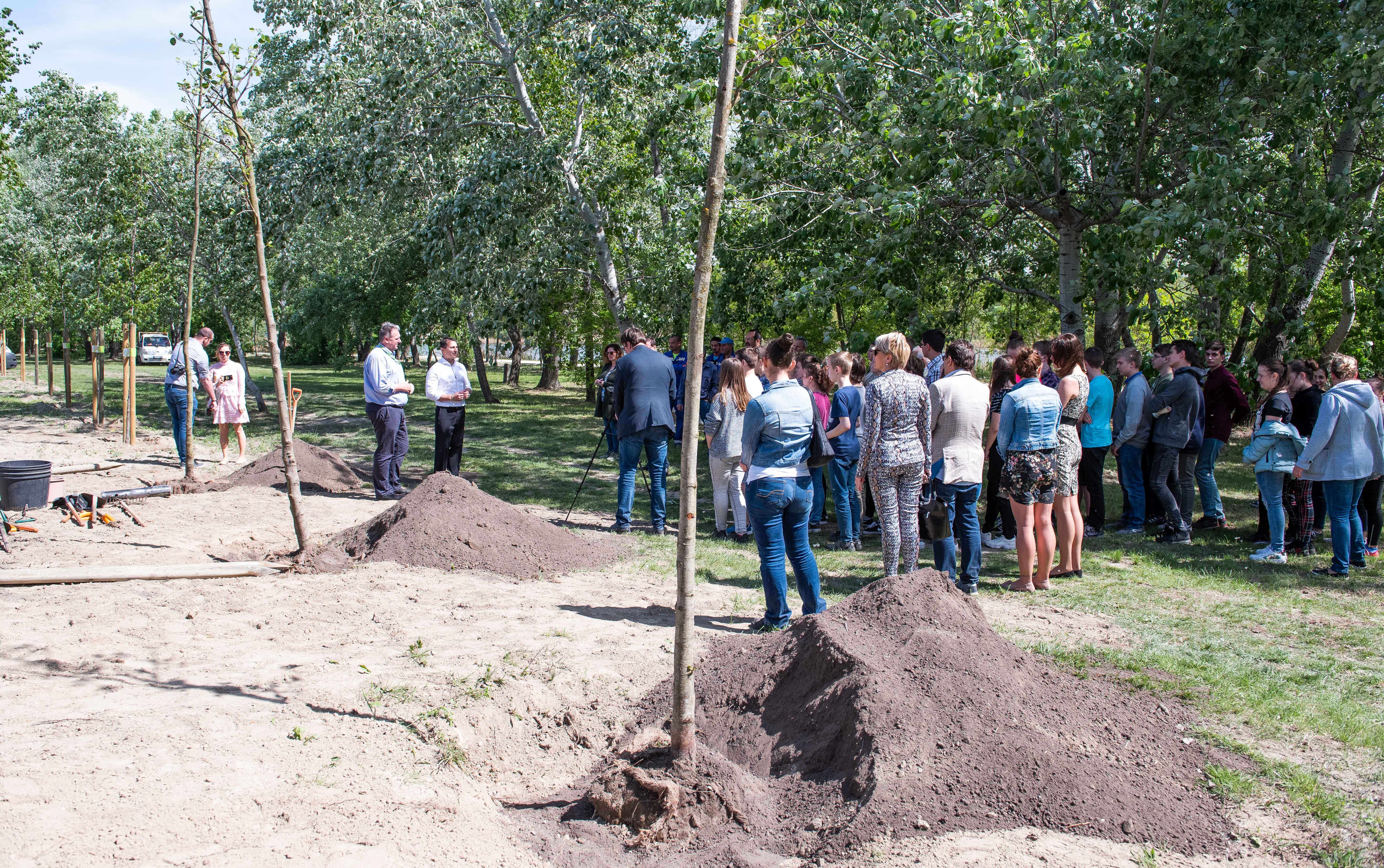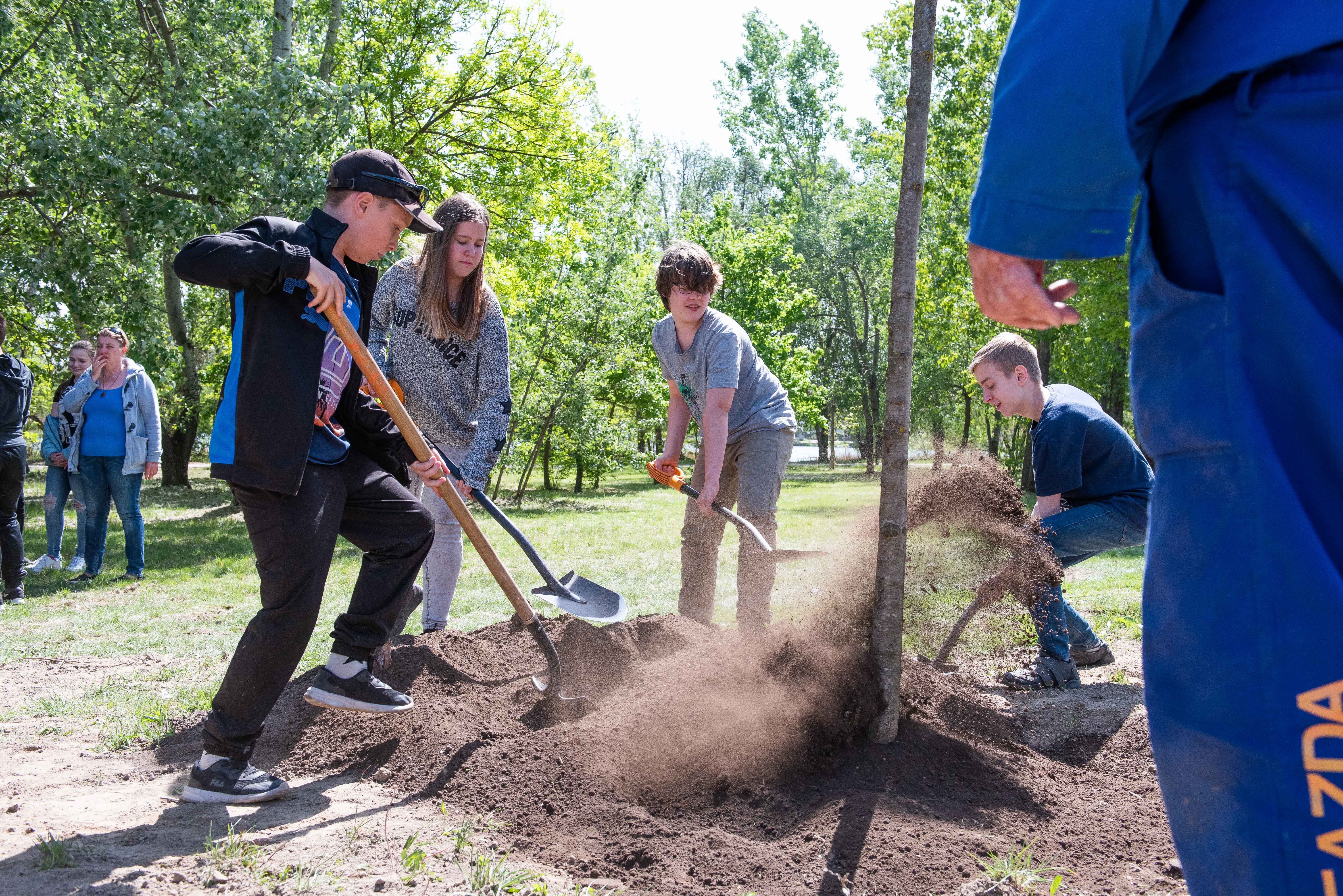 A facsemetéket Borbély Lénárd polgármester és Balogh Róbert a Főtáv munkatára a Szárcsa Általános Iskola 7-8. osztályos diákjaival közösen ültette el.