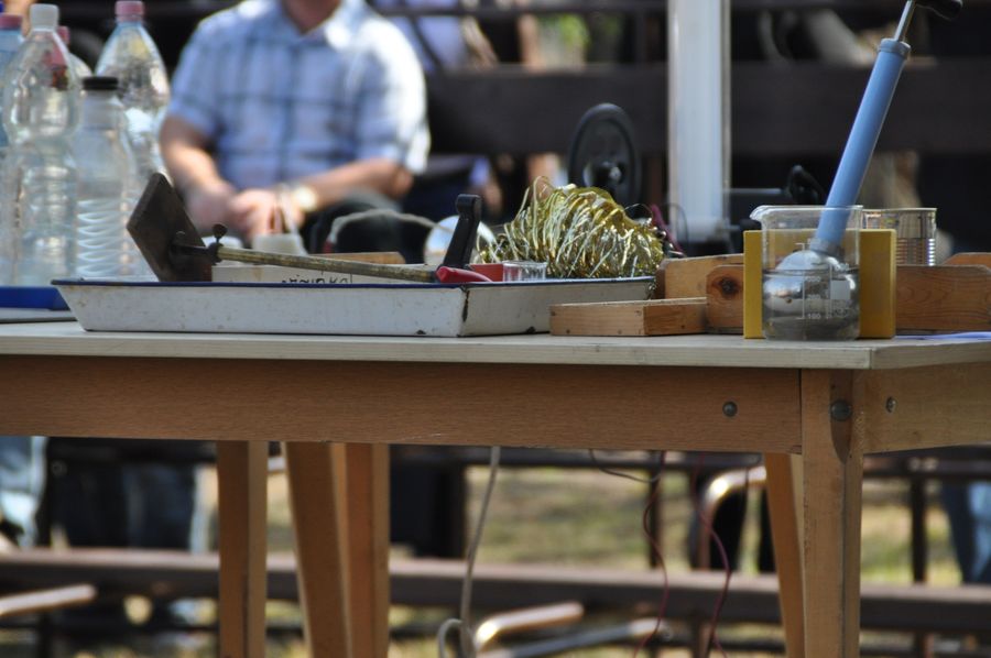 A kísérletezés közben Németh Szilárd polgármester (aki egykoron a Jedlik padját koptatta) Lakó tanár úr bemutatóinál segédkezett, s nem volt rest egyik-másikban részt is venni. Másodikként Pascal törvényének bemutatása következett egy Pascal-buzogány vagy vízi buzogány segítségével, amelynek lényege, hogy a nyugvó folyadékban a nyomás csökkenés nélkül, gyengítetlenül, minden irányban továbbterjedt. Ezután a Muki bácsi által saját kezűleg készített úgyneveztt Cartesius-búvárok segítségével zajlott le kísérlet, ami kitűnően szemléltetett egy másik fizikai törvényt. Ez is osztatlan sikert aratott a maga egyszerű- és nagyszerűségével. Láthattunk még kísérletet vízcsapra szerelt biciklibelsővel, és egy Pascal törvényén alapuló, bolognai üvegcseppel végrehajtott próbatételt is, ami szintén nem mindennapi módon végződött. Nem maradhatott ki az elektromosság sem, (soros kapcsolás), és legvégül a termit reakció bemutatására is sor került, melynek során 4000 fokra felizzva vált szinte semmivé egy egyszerű konzervdoboz.