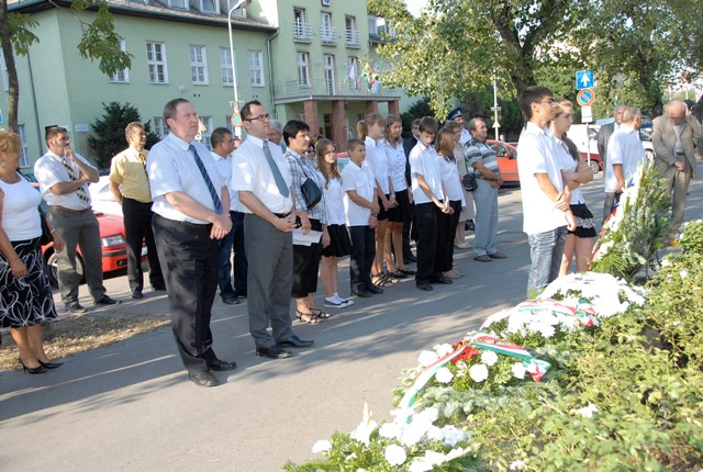 Zárásképpen az önkormányzat, a diákönkormányzat és a politikai pártok helyezték el koszorúikat az emlékmű lábánál.