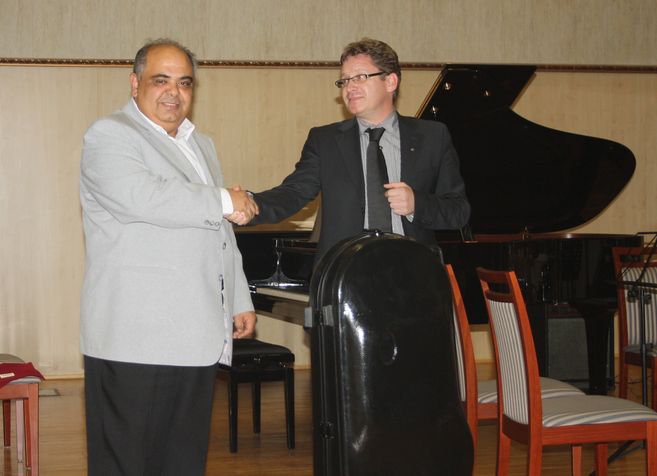 Műsoron kívűl még egy kis színpadi beszélgetés tanújai is lehettünk. Szabolcsi Miklós a Corpus hangszerbolt tulajdonosa baráti szavak kíséretében Balogh Gábor igazgatónak adományként átadott, összesen kettő millió forintot érő két darab hangszert, egy tubát és egy tenorkürtöt. Mint az adományozó elmondta: már több mint tíz éve figyeli Balogh Gábor munkáját, aki az ország legkiválóbb tanárait gyűjötte össze az iskolájába és ezáltal úgy érzi, hogy jó kezekbe kerültek a hangszerek. Az igazgatótól még azt is megtudhattuk, hogy ebben az évadban Értékes Zenei Esték címmel, náluk még négy ehhez hasonló remek hangulatú hangversenyen vehetünk részt.