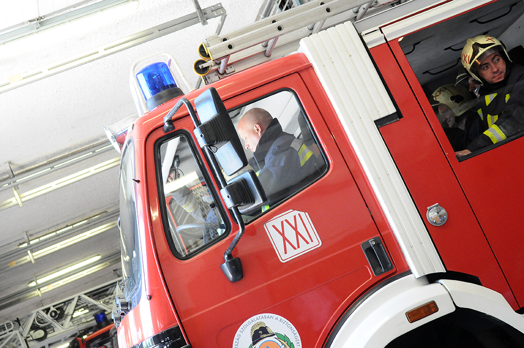 Amikor felgyulladtak a riasztást jelző fények és a hangosbemondón is elhangzott a riadó, a közönség feszült csendben húzódott félre a laktanya számukra kijelölt végébe. Mennyi idő telhetett el, mire a tűzoltók magukra rántották a szerelésüket, bepattantak egy járműbe és szirénázva kilódultak a laktanyából? Talán egy perc, esetleg kettő… Meglehet, némileg több is, mert ezúttal szándékosan kicsit lassabban szedelőzködtek, hogy a gyerekek hosszabban és alaposabban megcsodálják a tűzoltók készülődését.