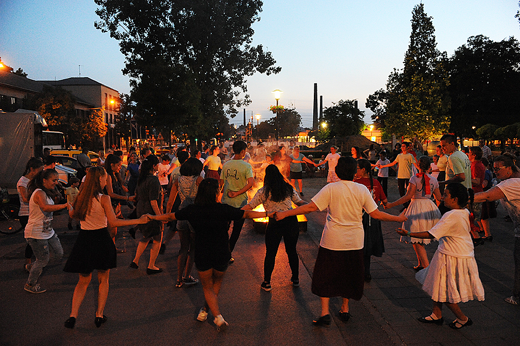 Ezt követően a néptáncosok körtáncoltak, majd párosával átugrották a tüzet. A táncba a nézők is bekapcsolódtak.