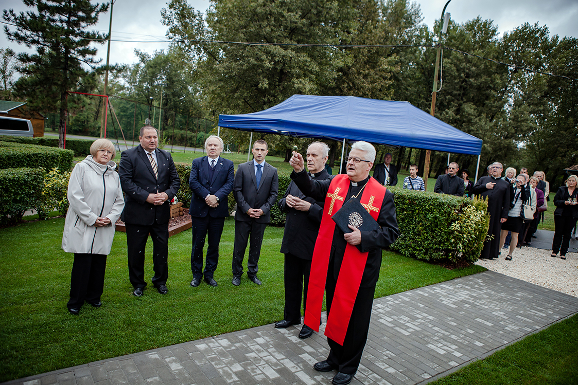 Ezt követően Spányi Antal püspök méltatta néhány szóban Jerzy Popiełuszkot, aki felemelte szavát a kommunista hatalom embertelensége ellen, s akinek a kiállása példaként szolgál. Az emlékmű felszentelése után a jelenlévők mécseseket helyeztek el a szobornál.