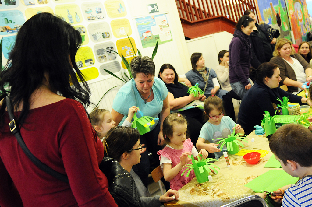A műsorszámok alatt nem unatkozhatott senki, mert a kis asztalokon színes krepp papírok, fonalak és megannyi dekorációs kellékek sorakoztak. A kézműves foglalkozáson a Csodakút Bázis Óvoda, a Bóbita Tagóvoda, a Csalitos Tagóvoda és a Jupiter Tagóvoda dolgozói irányításával lelkesen munkálkodtak az ügyes kezűek. A közelgő nemzeti ünnepre és húsvétra készülvén alkothattak csibe pompont, húsvéti kopogtatót, papír hengerből nyuszit, nemzeti színű tulipánt vagy virágos tavaszi kosárkát.