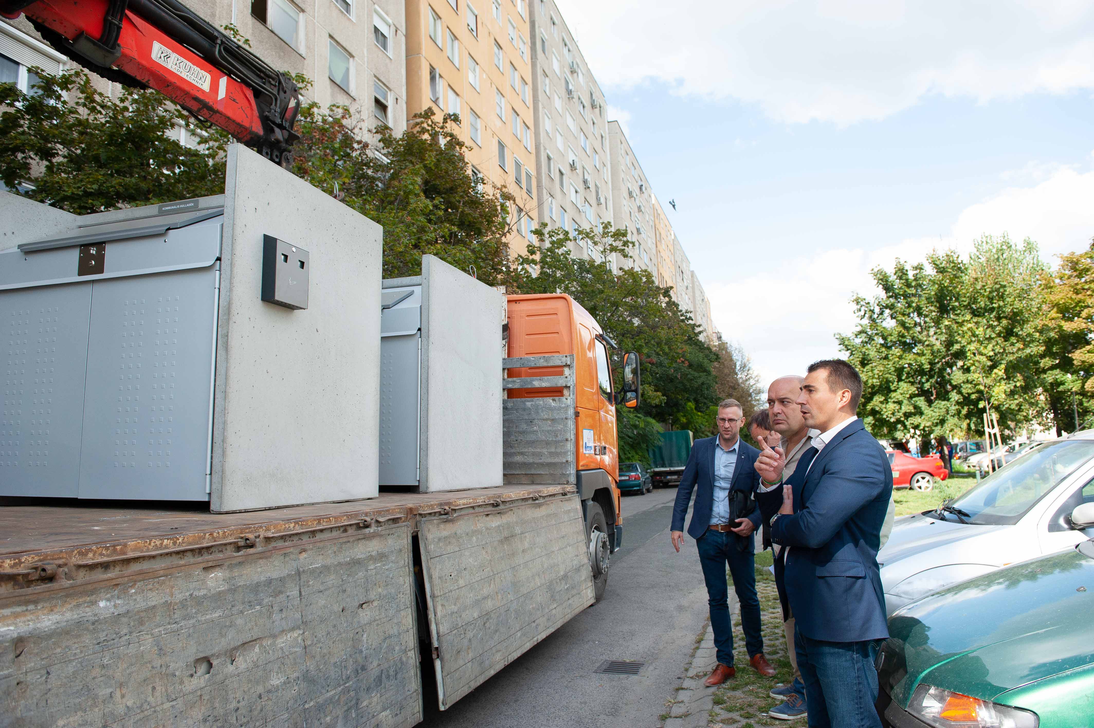 Az önkormányzat 32 darab ilyen hulladéktárolót rendelt meg, amelyeket a Kiss János altábornagy és az Erdősor utcában, valamint a Kozmosz sétányon tesznek ki. A tárolók zárhatóak, így illetéktelenek nem tudnak oda hulladékot dobni. Külön zárható a felső bedobó nyílás és külön a konténer be-és kirakására szolgáló nagy ajtók. A tárolók egy részére cigarettacsikk-tartót is felszereltek.