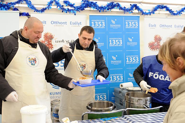 Az Ökumenikus Segélyszervezet hat napon át, december 18. és 23. között naponta 1000 adag ételt oszt ki önkéntesek, a támogatók és a segélyszervezet munkatársai segítségével a hajléktalanoknak, illetve a rossz szociális körülmények között élő családoknak. Az Ökumenikus Segélyszervezet 2013 óta rendez karácsony előtt Csepelen is ételosztást. A vendégségén az étel mellett feldíszített, fűtött sátor és karácsonyi zene is fogadta a rászorulókat.
