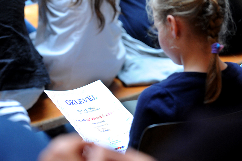 Ezután a képzőművészeti kategória képviseletében a zsűri elnöke, Lázár Zsuzsa, a Budai Rajziskola vezetője szólt a gyerekekhez. Magas színvonalúnak értékelte a csepeli diákok munkáit, és bíztatta őket az alkotáson keresztül saját környezetük értésére, s annak minél fantáziadúsabb kifejezésére. A szakember szerint nem arról szólnak a rajzórák, hogy mindenkiből művész legyen, a kreatívvá válás egy folyamat része.