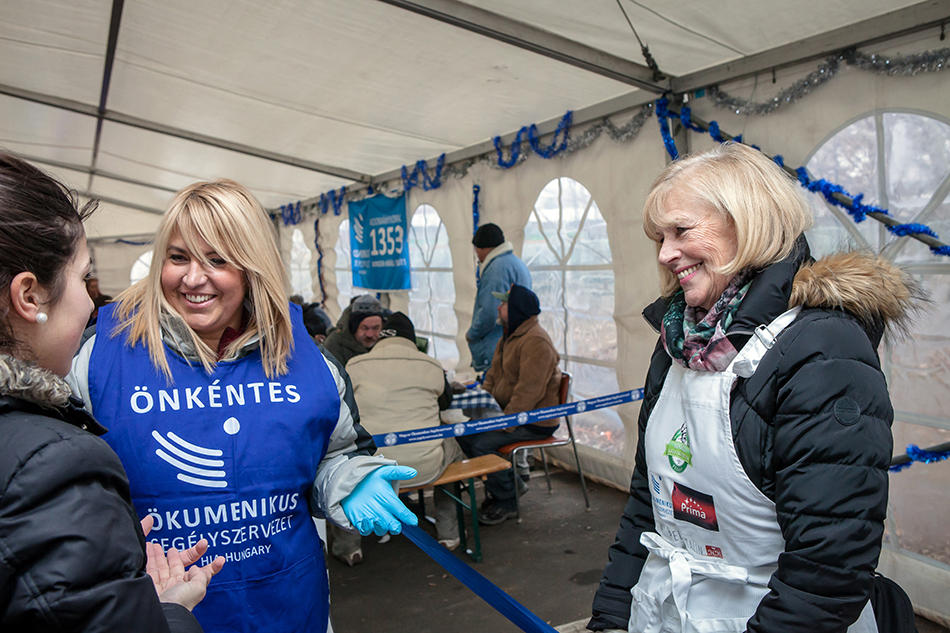 Az Ökumenikus Segélyszervezet önkéntesei az ország más településein is hasonló szeretetvendégségén várják a szociálisan rászorulókat.