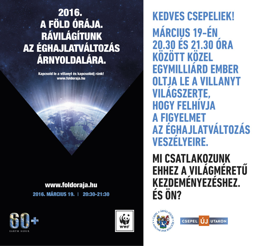 2016. március 19-én, 20.30 és 21.30 óra között, közel egymilliárd ember oltja le a villanyt világszerte, hogy felhívja a figyelmet az éghajlatváltozás veszélyeire.