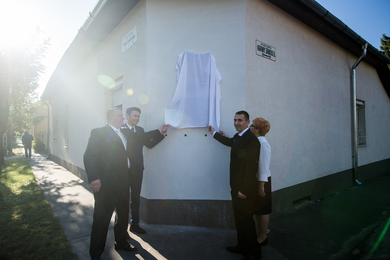Az ünnepség a Szent László és az Arany János utca sarkán kezdődött, ahol emléktáblát avattak Arany János születésének kétszázadik évfordulójának tiszteletére. Az emléktáblát Németh Szilárd, Borbély Lénárd, Török László és Morovikné Fülöp Csilla leplezte le. Koszorút helyezett el az önkormányzat nevében Borbély Lénárd, Ábel Attila és Morovik Attila. Az országgyűlés nevében Németh Szilárd, a szülőváros Nagyszalonta részéről Török László. Az Arany János Általános Iskola nevében Morovikné Fülöp Csilla, valamint az iskola diákjai. Az emléktáblát Kispál György katolikus plébános áldotta meg.