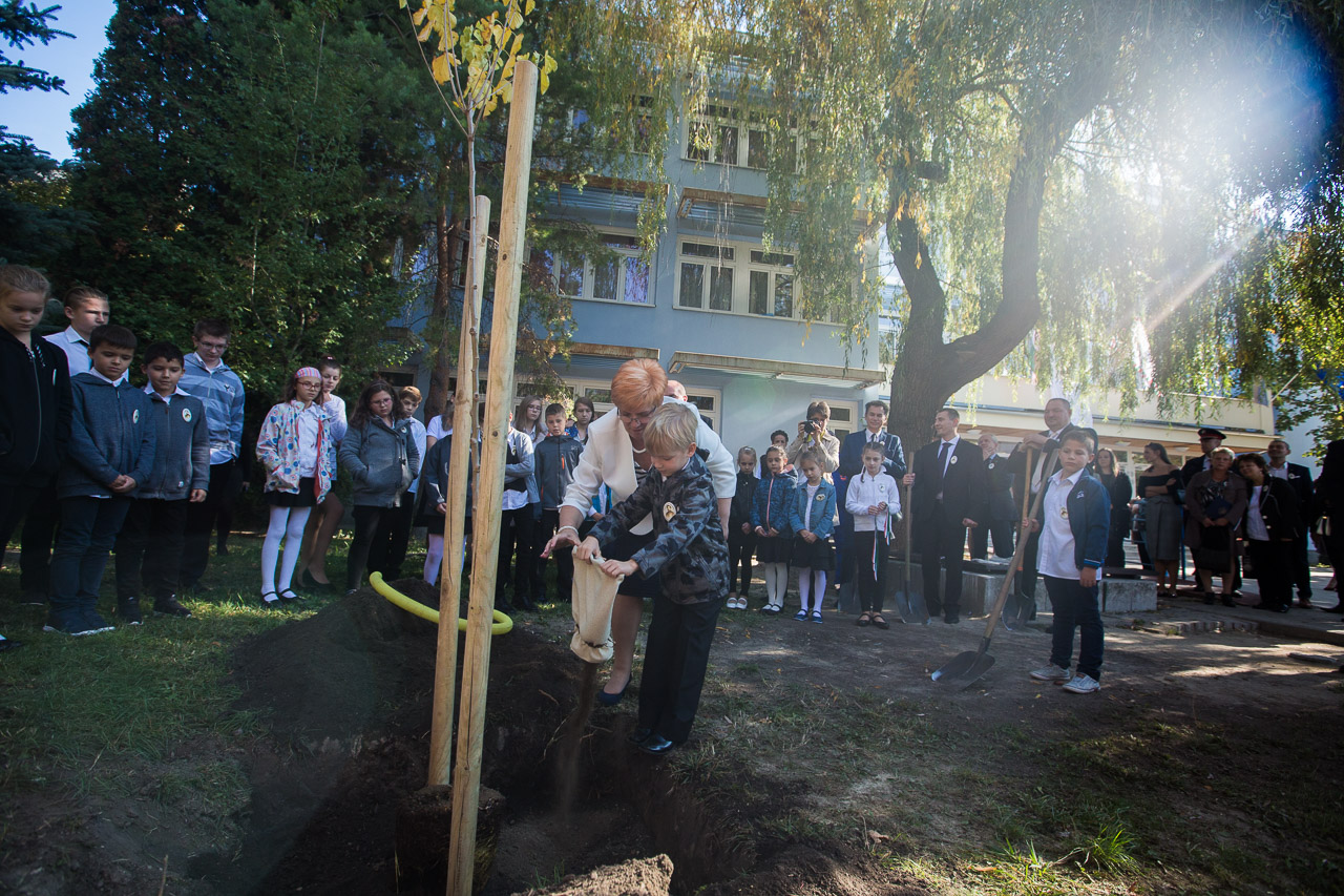 Az iskola udvarán végül elültettek egy Nagyszalontáról származó eperfacsemetét.
