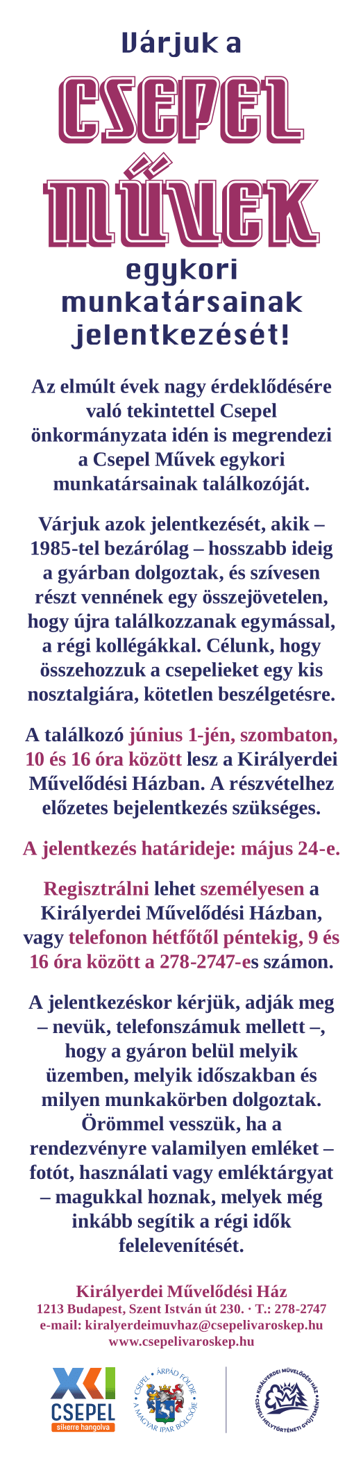Várjuk a Csepel Művek egykori dolgozóinak jelentkezését!