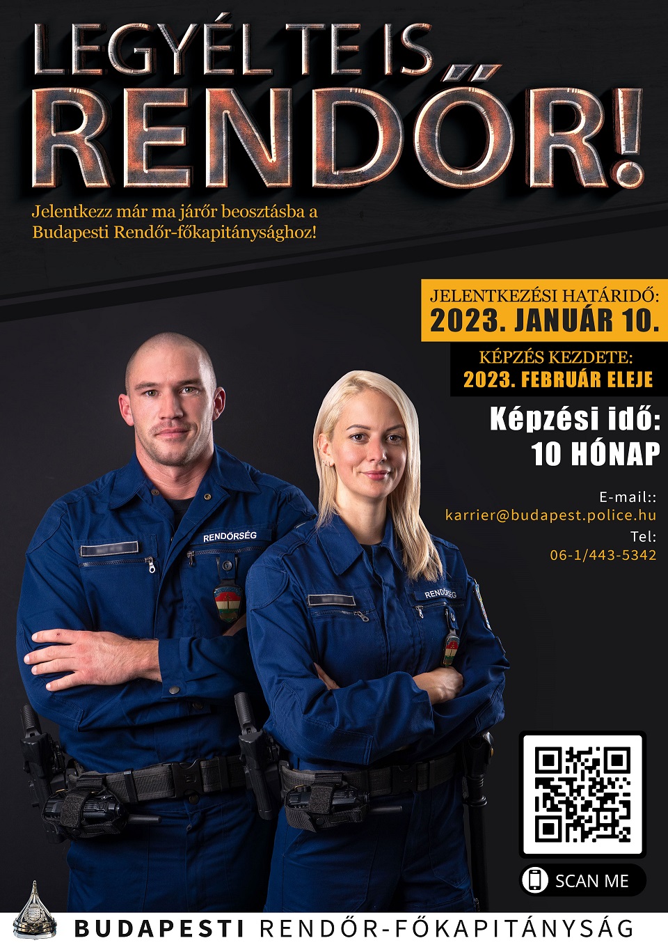 A következő rendőrjárőr képzés 2023. február elején indul, amelyre a jelentkezési határidő: 2023. január 10. A képzés nappali rendszerű, 10 hónap időtartamú és magába foglalja a rendőrségnél töltött gyakorlatot is.