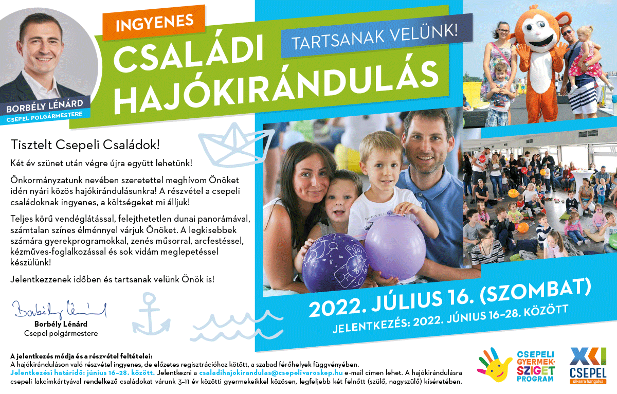 Újra várjuk a csepeli családokat ingyenes hajókirándulásunkon!
