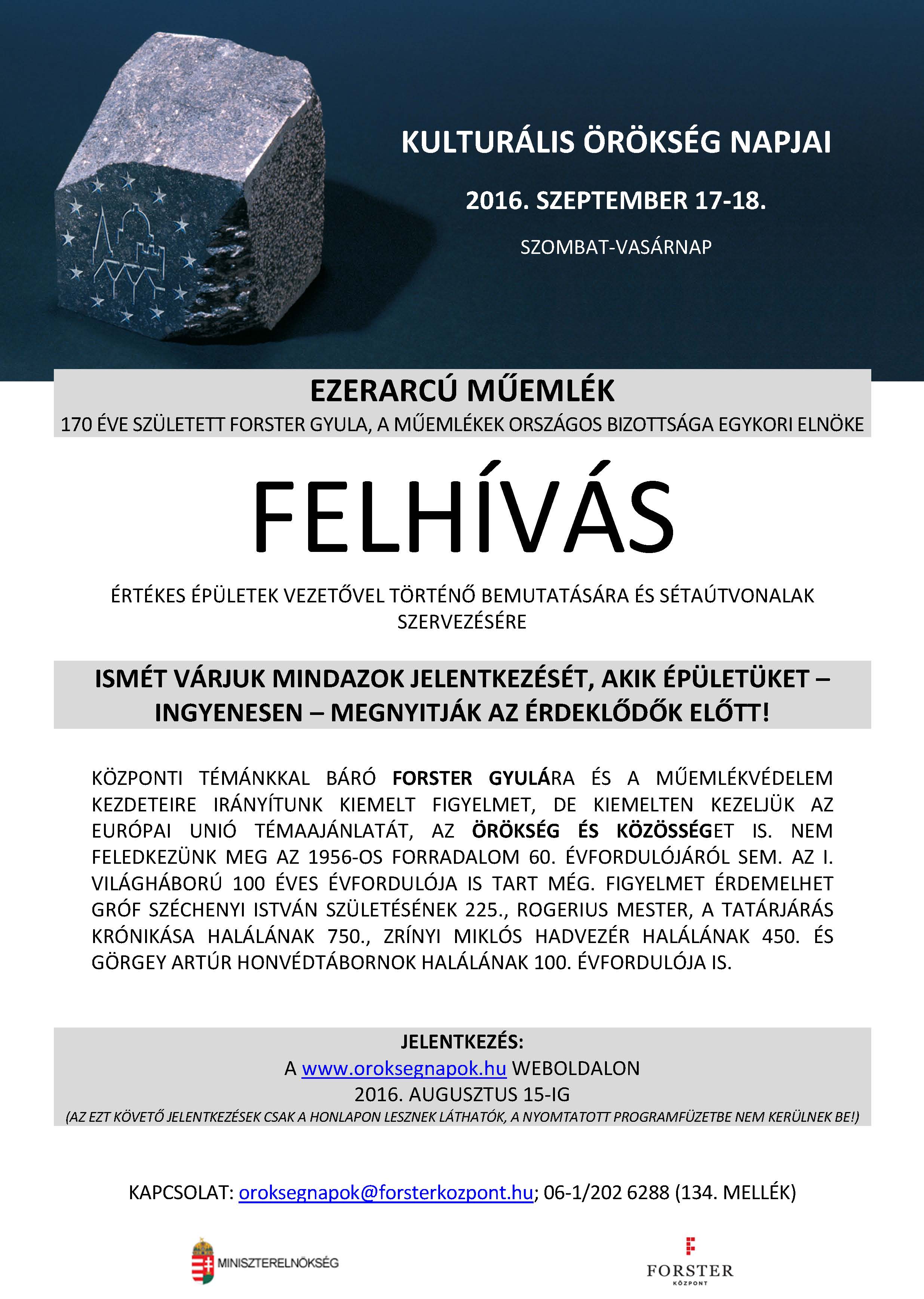 Kulturális Örökség Napjai - Felhívás