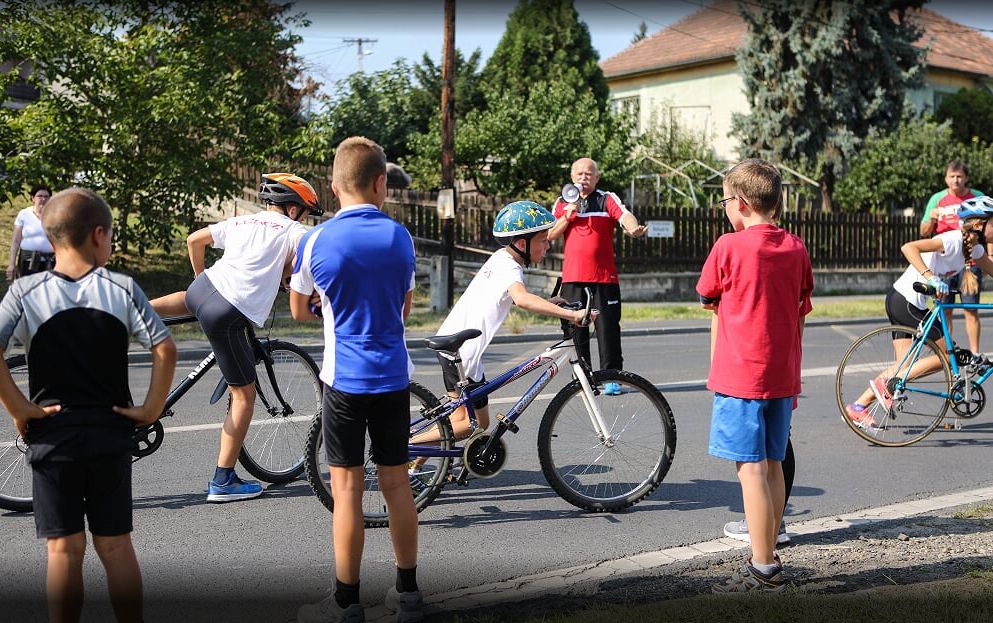 A verseny korcsoportokra bontva zajlott. A gyerekek az ifjúsági táborból indulva futva tették meg a táv első részét, majd visszaérve bringára pattantak, és rendőri biztosítás mellett a Hollandi úton mérték össze tudásukat – visszaérve pedig még egy kicsit kellett futni a győzelemért. A verseny nem csak a gyerekek számára jelentett kihívást, hanem az azt koordináló tanárok számára is. Jenei János, a kerület testnevelőtanári munkaközösségének vezetője egy megafonnal uralta a helyzetet a tábor bejáratánál, és csupán lélegzetvételnyi ideje volt, amikor lapunknak a versenyről mesélhetett.